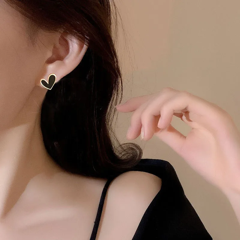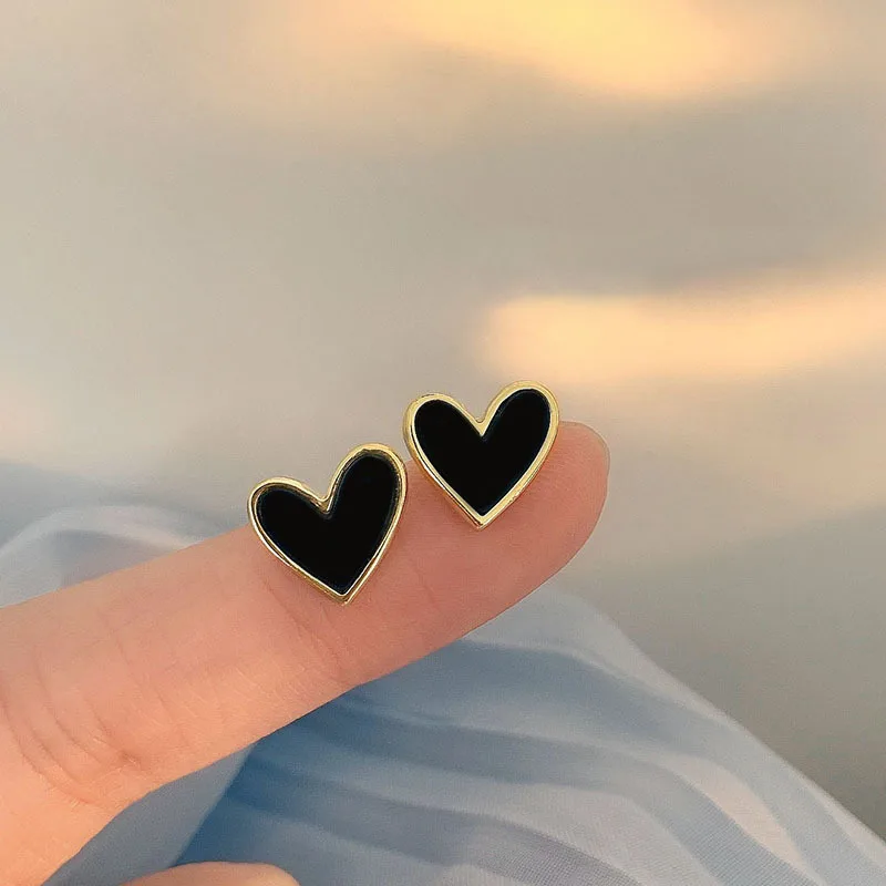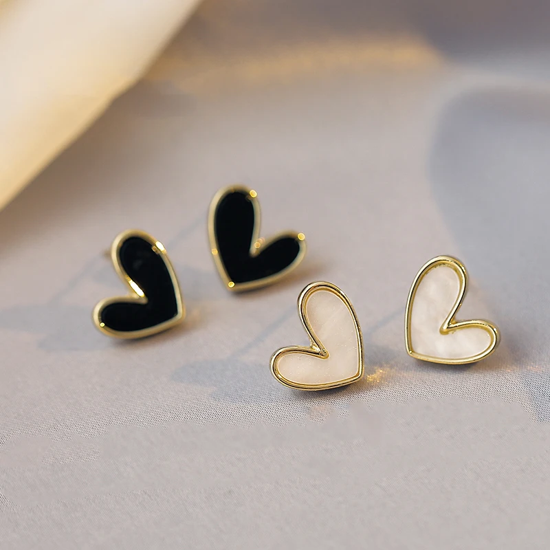 أقراط قلوب أبيض وأسود – JWER لمسة بسيطة وحساسة للبنات