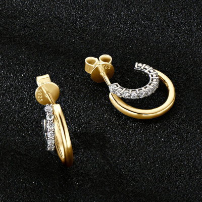 أقراط هوجي مويسانيتي KNOBSPIN – D اللون 1.5 ملم – فضة S925 مطلية 18K – للنساء – ماس مختبر