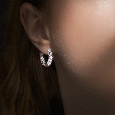 ارتقي بإطلالتك مع أقراط Knobspin Hoop 💍، مصنوعة من فضة إسترليني 925 مطلية بالذهب الأبيض 🌟، مزينة بـ مويسانيتي D اللون 💎، تصميم دائري أنيق 🎯 يضيف لمسة فاخرة وعصرية ✨. مثالية للحفلات، الزفاف، والمناسبات الخاصة 🎉.