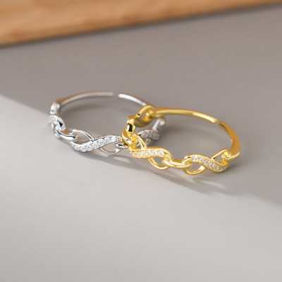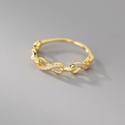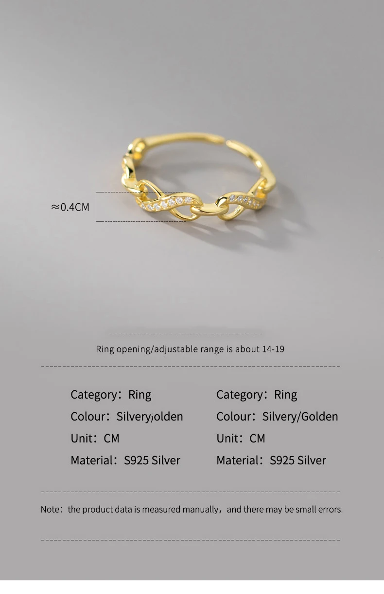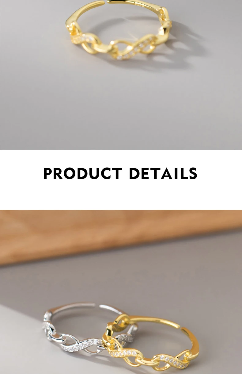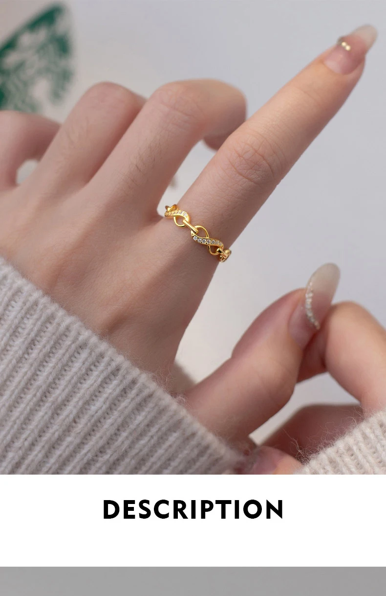 أضيفي لمسة من الرقي والفخامة إلى إطلالتك مع هذا الخاتم الفاخر المصنوع من الفضة الإسترلينية 925 والمرصع بأحجار الزركون اللامعة. يتميز بتصميم أنيق على شكل حروف عصرية (8-حرف مشبك) مع طلاء فاخر من الذهب عيار 18 يمنحه بريقًا استثنائيًا. بفضل تصميمه القابل للتعديل، يناسب مختلف الأحجام ليكون خيارًا مثاليًا للاستخدام اليومي أو للمناسبات الخاصة.