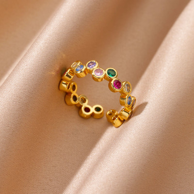 خاتم الزركون الخنصر للنساء – فولاذ مقاوم للصدأ ذهبي