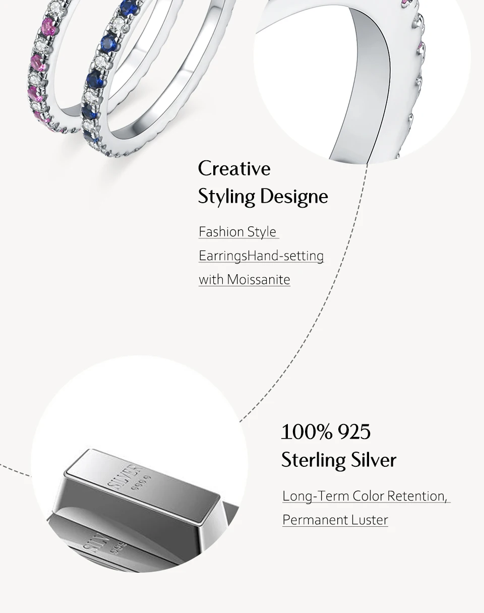 يتوفر باللونين الوردي والأزرق مع أحجار مويسانيتي براقة بجودة عالية تحاكي الماس الحقيقي. مثالي كـ خاتم زفاف، خطوبة، أو هدية راقية.