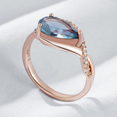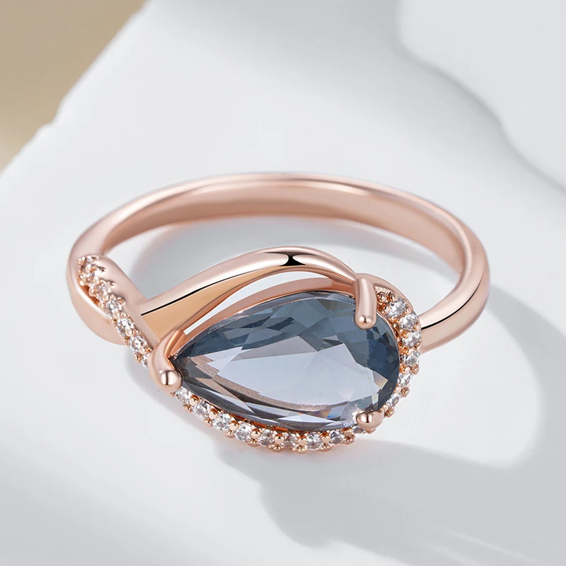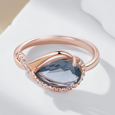 خاتم Kinel رمادي زركون طبيعي – ذهب وردي 585 للعروس
