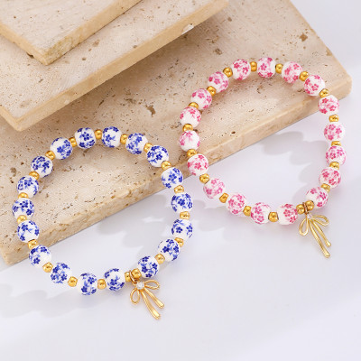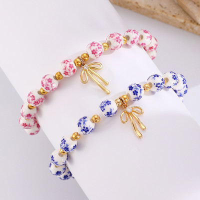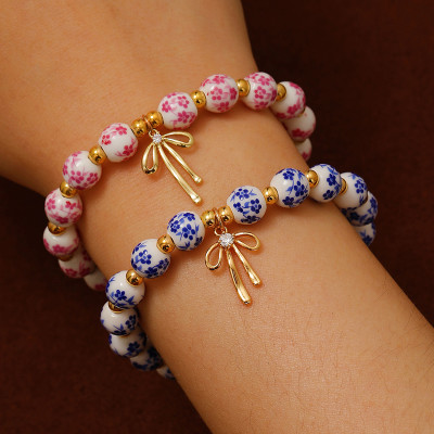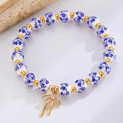 سوار اليدوية القوس الأزرق والأبيض سيراميك صيني قابل للتعديل