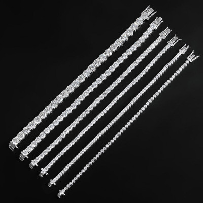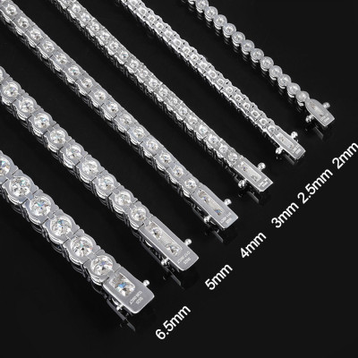 سوار تنس KNOBSPIN مويسانيتي 2مم – فضة S925 مطلي الذهب الأبيض – للنساء والرجال – مجوهرات براقة للحفلات