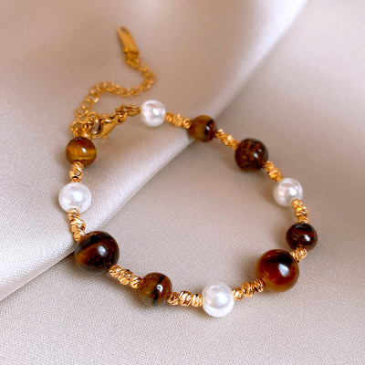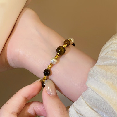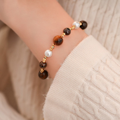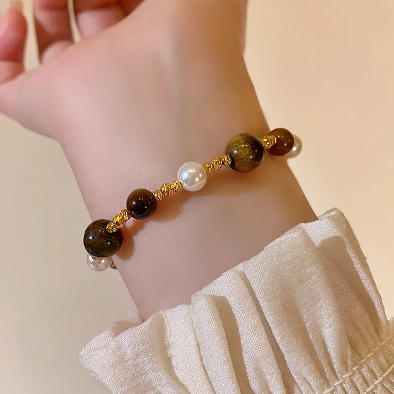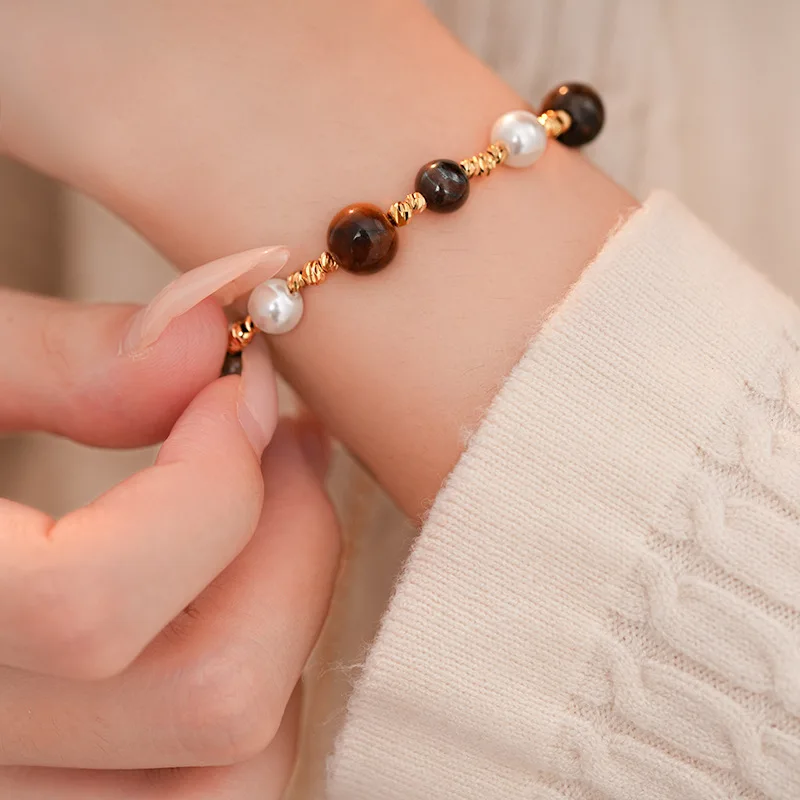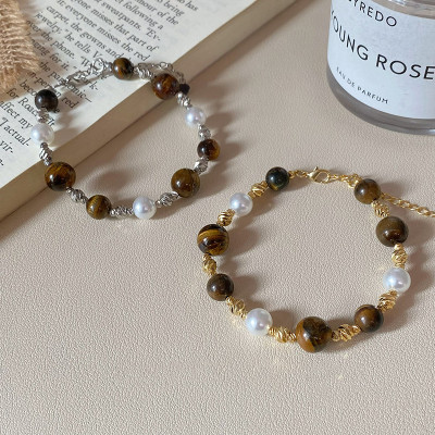 تميزي بإطلالة فريدة مع سوار حجر عين النمر الطبيعي 🐅 مصنوع من الفولاذ المقاوم للصدأ عالي الجودة. تصميمه مستوحى من الطراز الهندي التقليدي مع لمسات اللؤلؤ ✨ ليمنحك أسلوبًا عصريًا وأنيقًا في كل المناسبات.