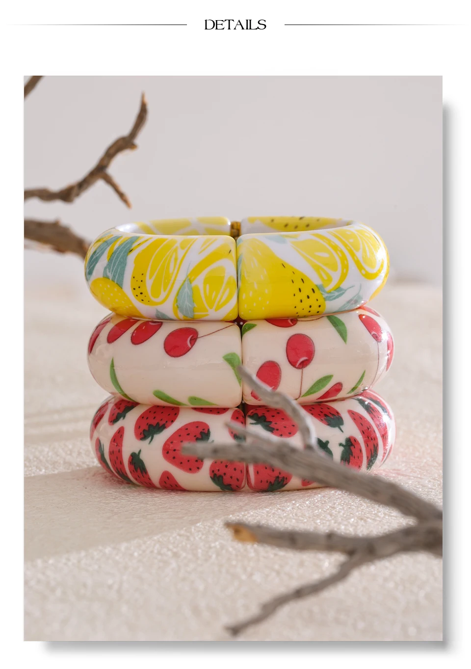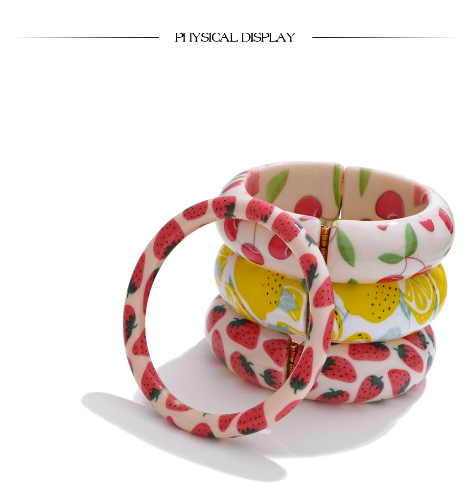 أضف لمسة ملونة ومبهجة إلى إطلالتك مع سوار Yhpup الفواكه 63-65 ملم 🌿، تصميم واسع وفريد من نوعه لعام 2025 💫، مناسب للارتداء اليومي، المناسبات الخاصة، أو كهديه مميزة 🎁.