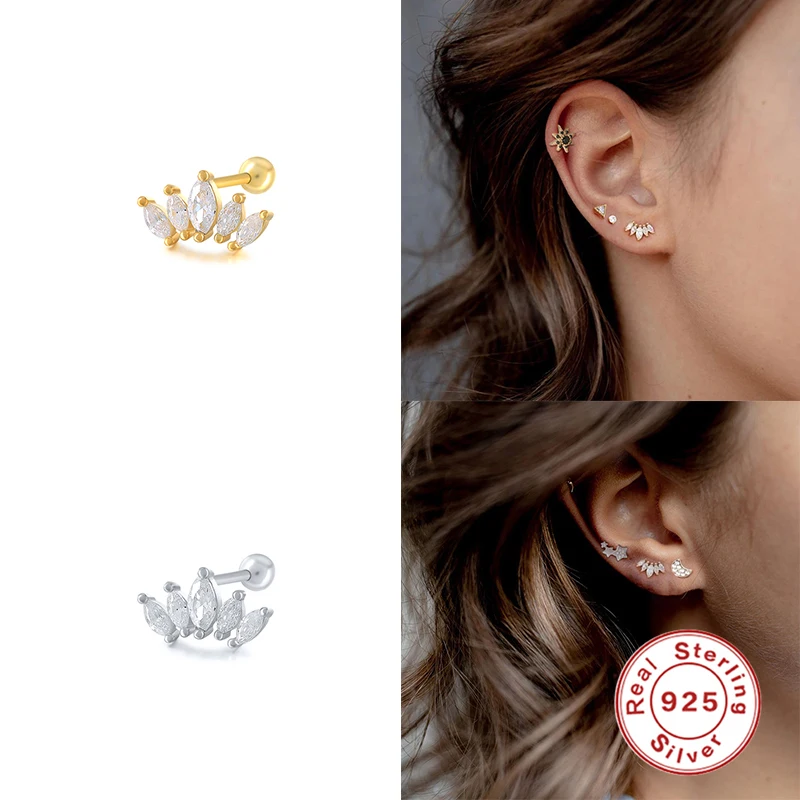 أضيئي إطلالتك مع قرط كانر الفضي بتصميم القمر المرصع المصنوع من الفضة الإسترلينية 925 عالية الجودة.