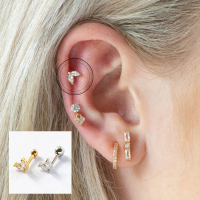 قرط كانر الفضي – تصميم القمر المرصع للنساء
