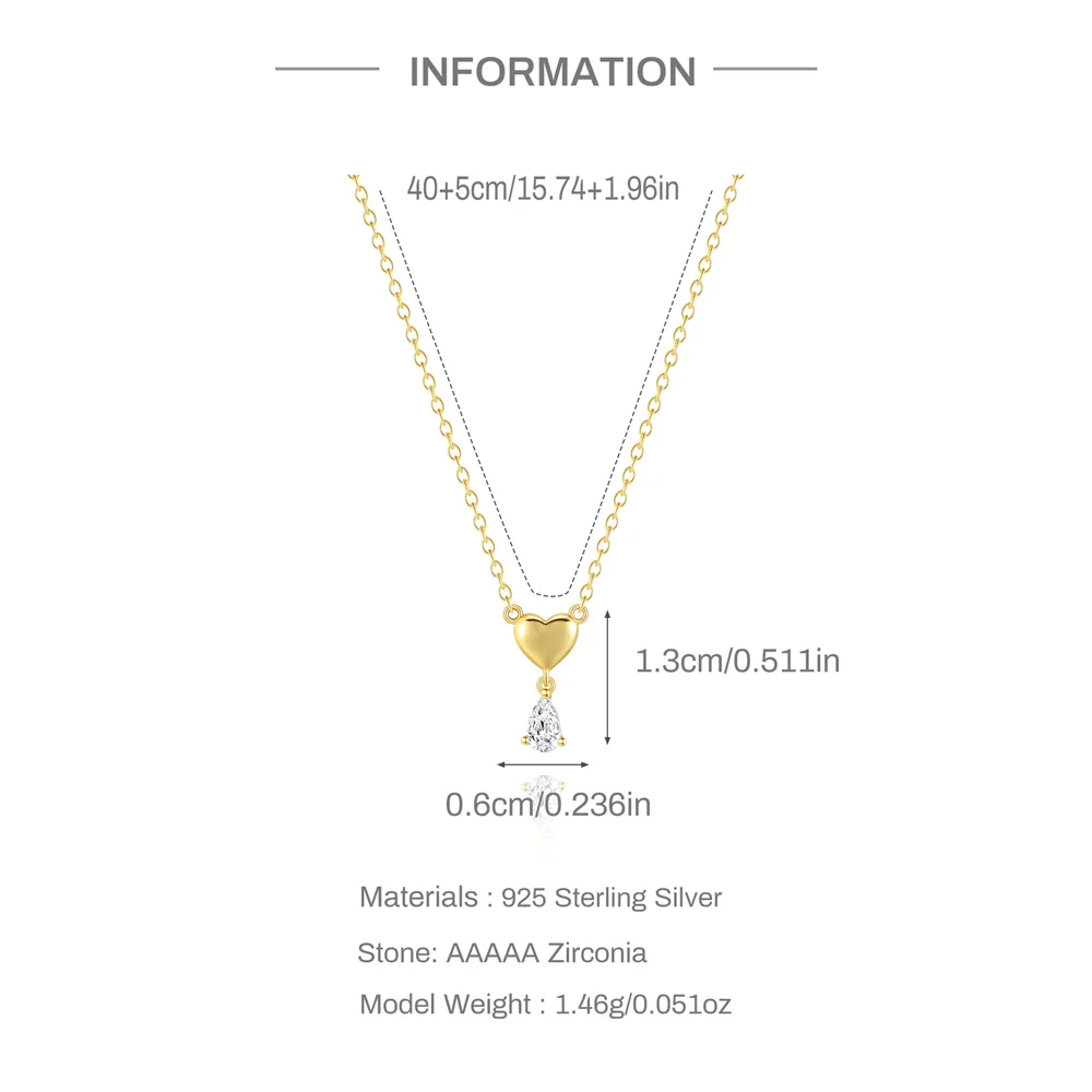 قلادة كانر الفضية – قلب وقطرة ماء مرصعة بالزركون