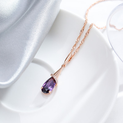 قلادة كينيل – طويلة بتصميم قطرة ماء أرجواني طبيعي بزركون، ذهب وردي 585 للنساء