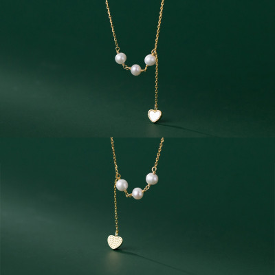 قلادة موديان قلب المينا – فضة S925 بسلسلة طويلة