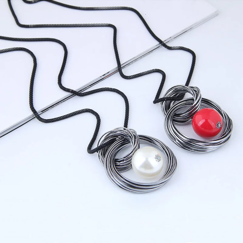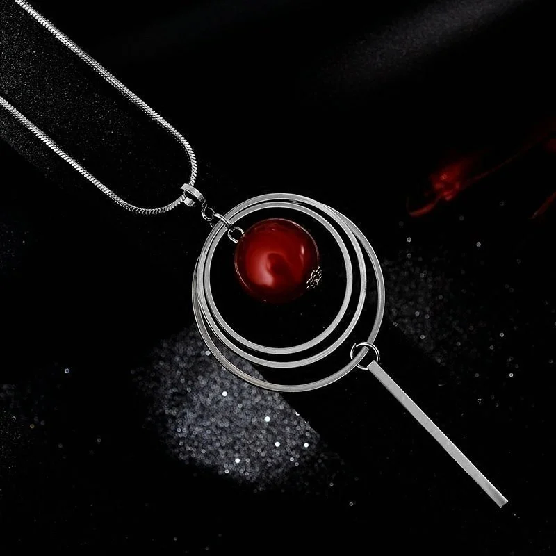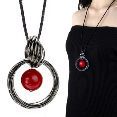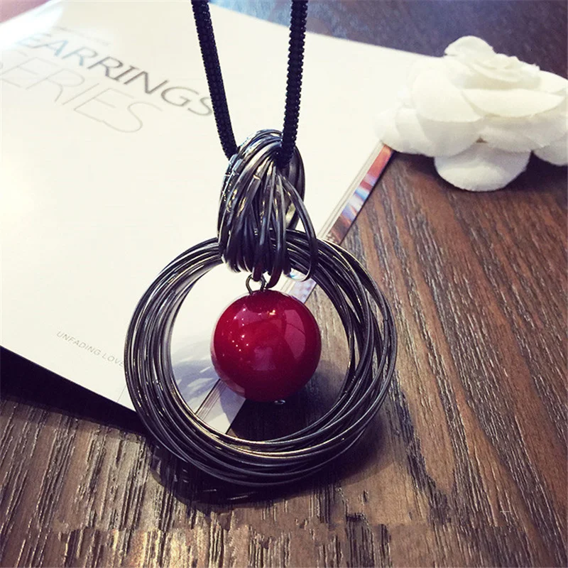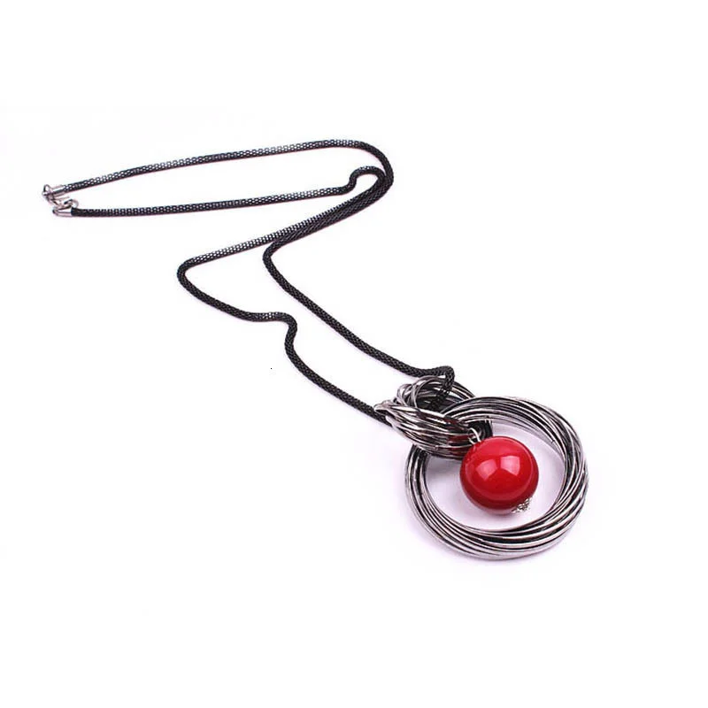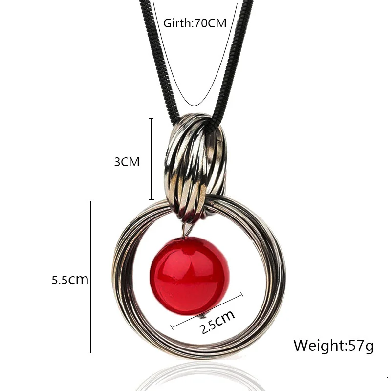 قلادة ميفلين طويلة بالكرة الحمراء – تصميم دائري عصري