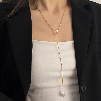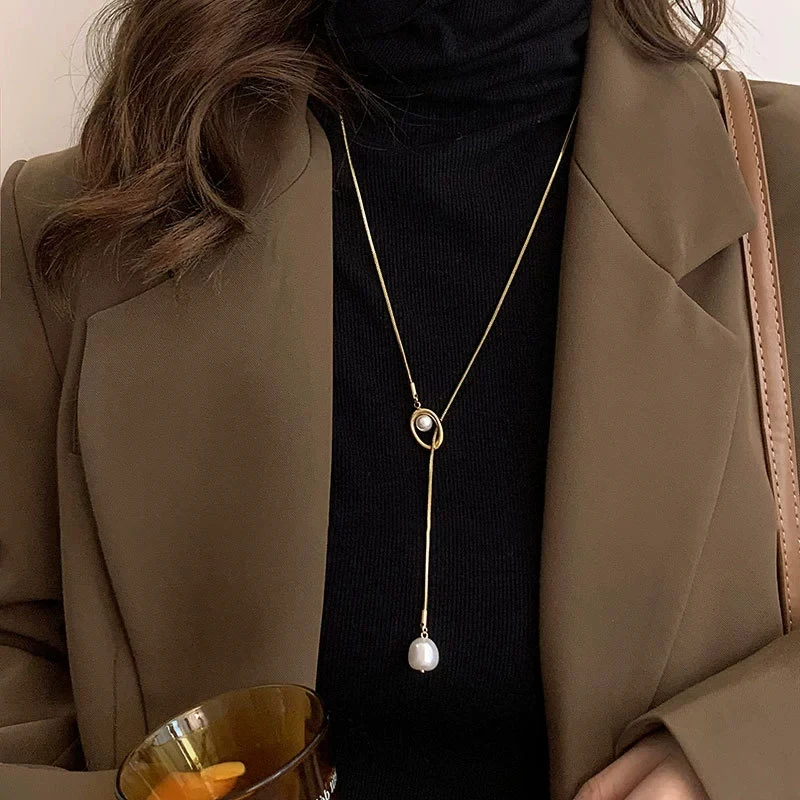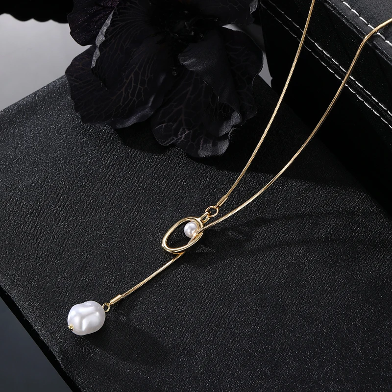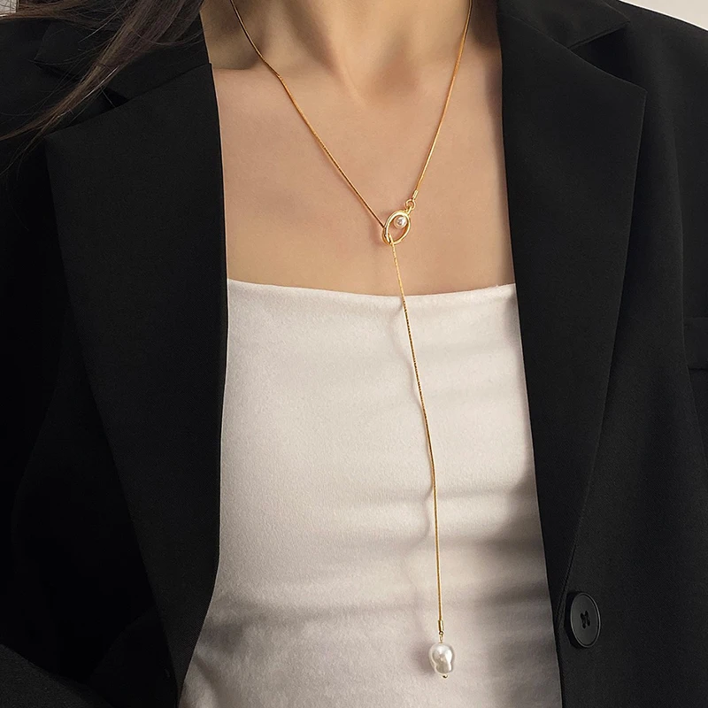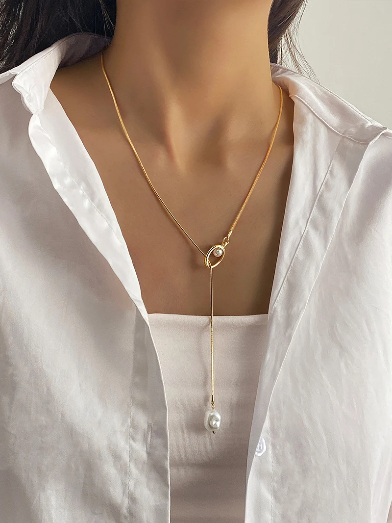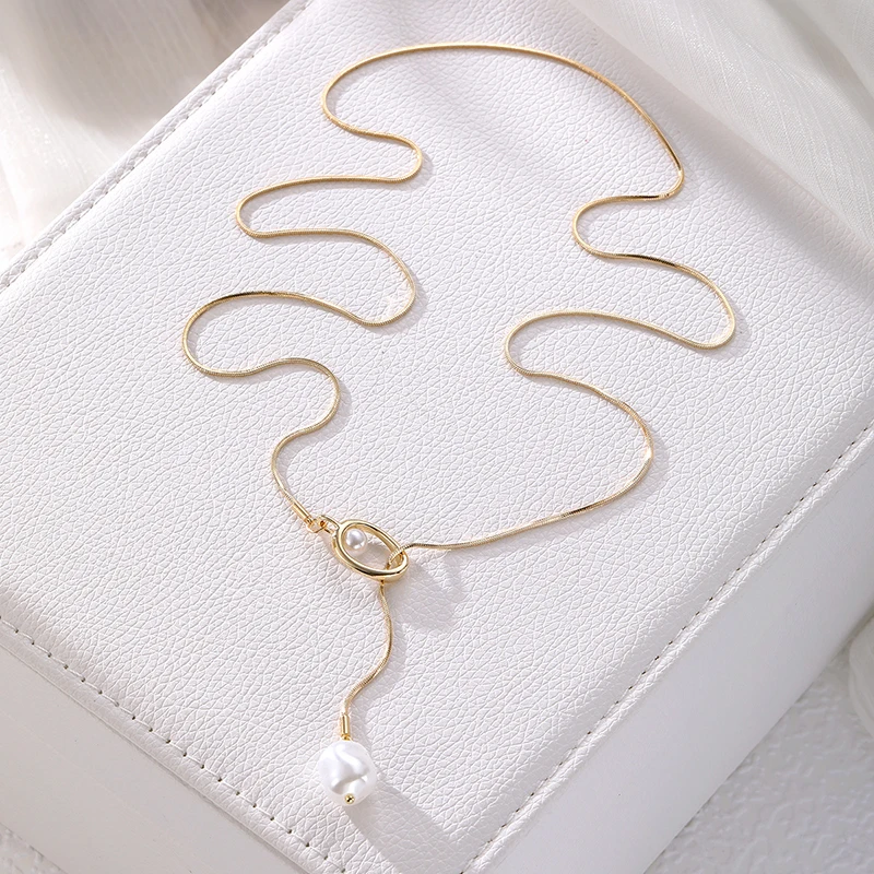 2025 قلادة طويلة Y-شكل عظم الثعبان مع اللؤلؤ الباروك – للنساء