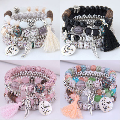 تألقي مع أساور Meyfflin البوهيمية 🌿، تصميم متعدد الطبقات مع خرز ملون ورمز الحب وريشة شرابة أنيقة ✨.