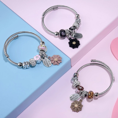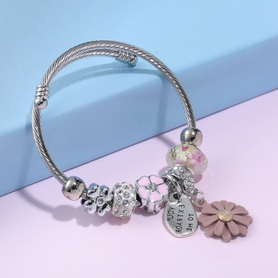 تألقي مع سوار Meyfflin العصري ✨، تصميم فضي مع خرز كريستالي أبيض وزهرة مينا 🌸 يضيف لمسة رقيقة وأنيقة لإطلالتك اليومية أو السهرة.