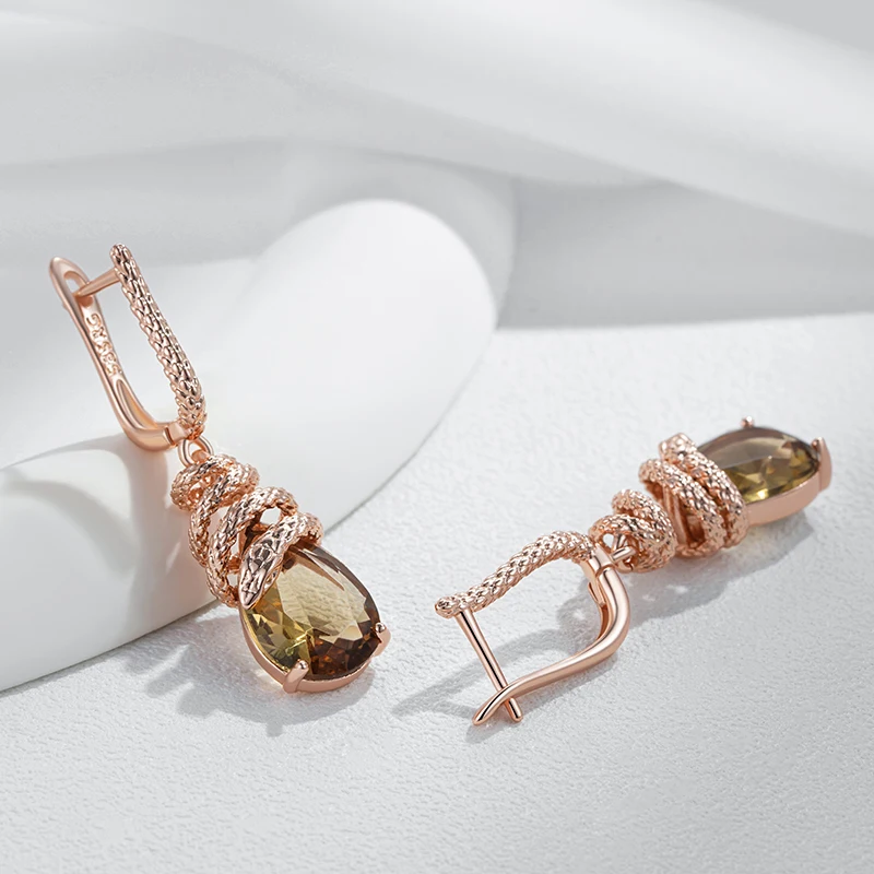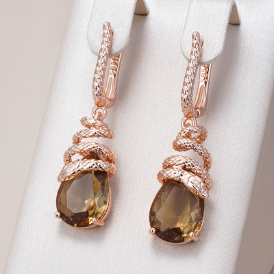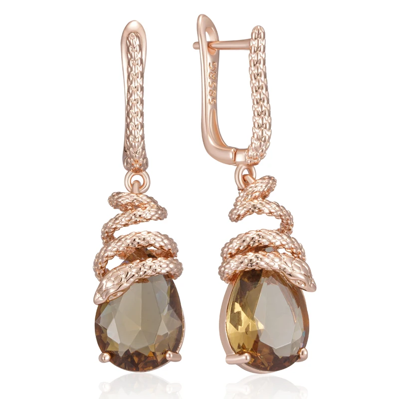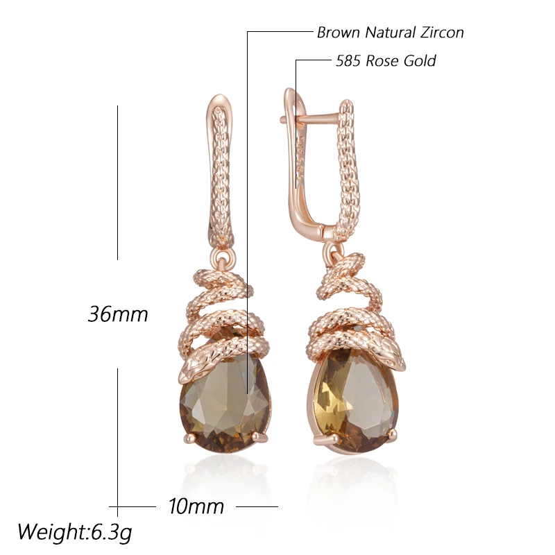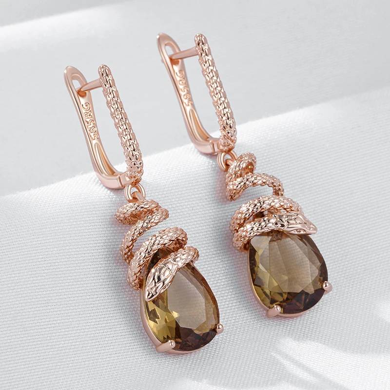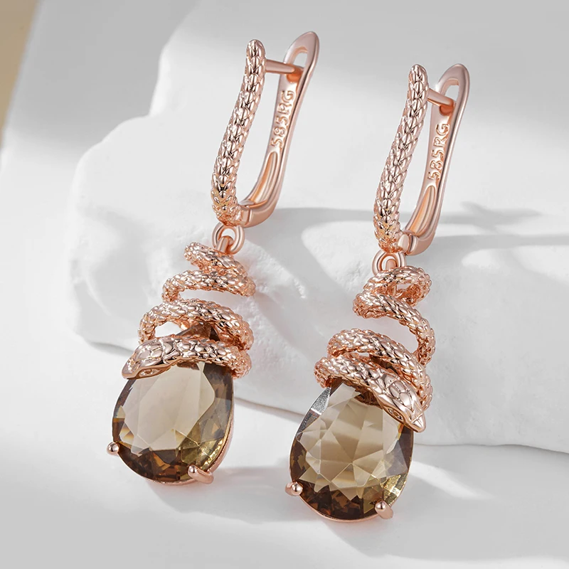 أقراط كينيل الأفعى بزركون بني – ذهب وردي 585 – تصميم فاخر عصري